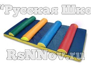 Детский мягкий модуль - Мат с роликами Многофункциональность этого мата позволяет использовать его и для спортивных занятий и для ролевых игр. Кочки, которые крепятся к мату с помощью контактной ленты, представляют собой отдельные мягкие элементы. На них можно сидеть, использовать в качестве конструктора.