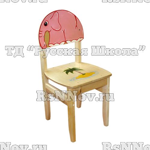 Каркас стула собран из березовых брусков. Ножки прямоугольные в сечении. Сиденье и спинка выполнены из фанеры толщиной 7-8 мм, к каркасу крепятся на саморезы. Рисунки ручной работы.
