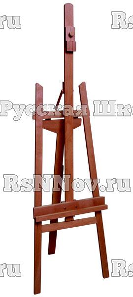 Складной мольберт-тренога с изменяемым наклоном направляющей, подвижным лотком и бегунком простой конструкции для удерживания планшета толщиной до 30 мм. Может быть выполнен из бука или других твердых пород дерева.