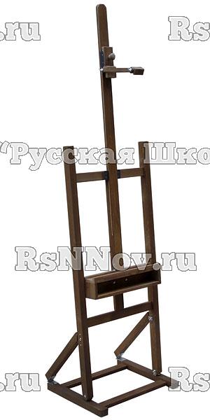 Складной станковый мольберт с изменяемым наклоном верхней рамы (80, 85 и 90 град.), подвижной направляющей лотком-ящиком для кистей и красок.